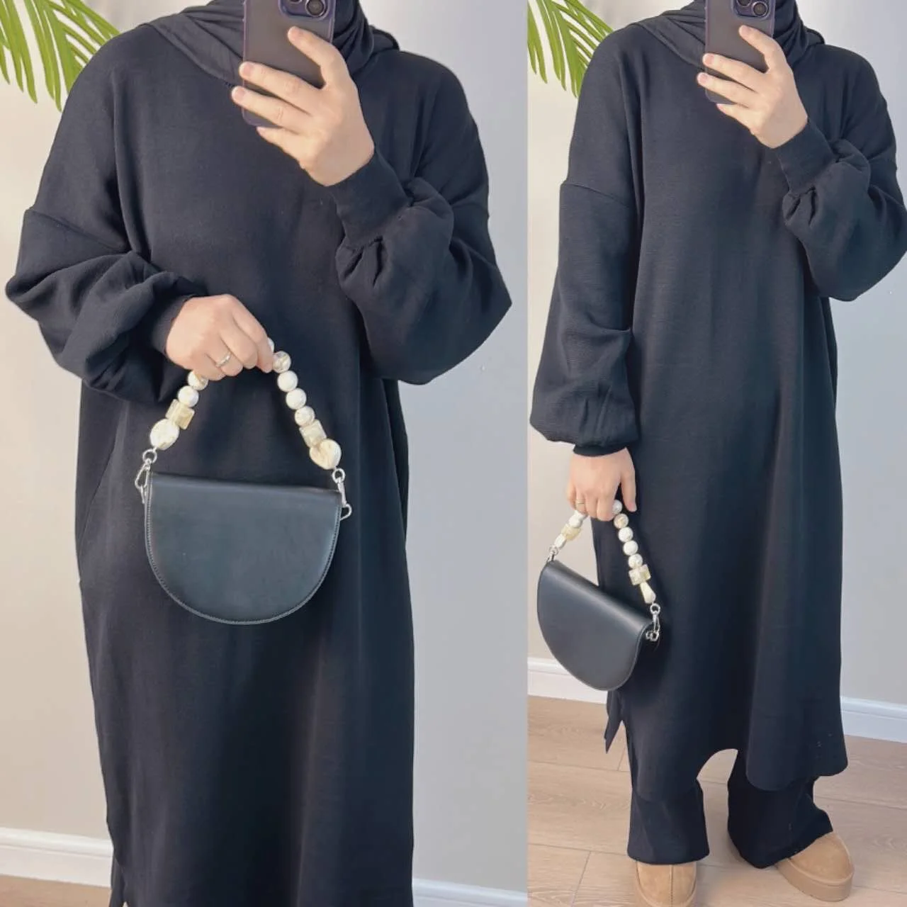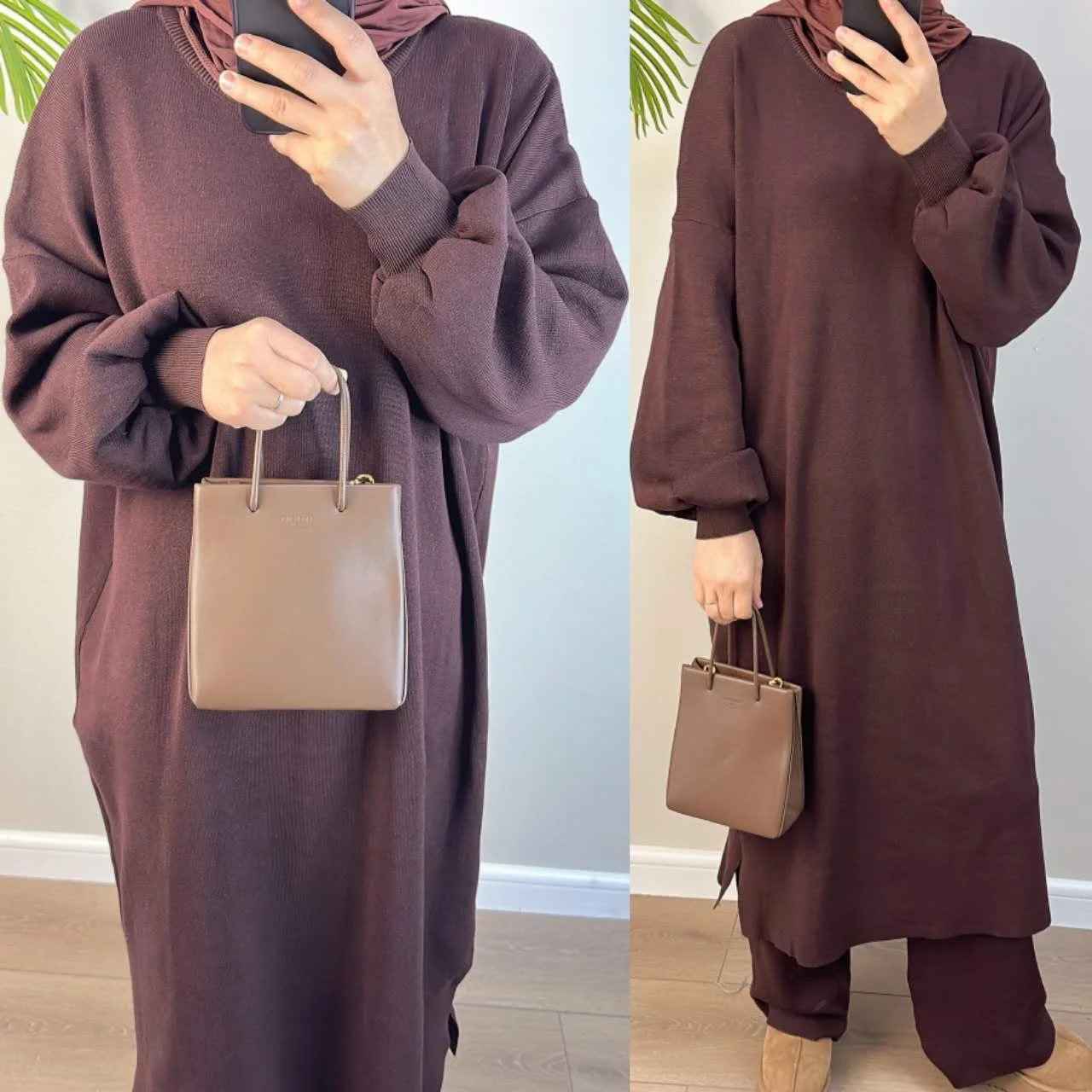 With subtle balloon sleeves and a modest silhouette, this set flows naturally with every step, making it perfect for home, errands, or a cozy day out. It’s the piece you’ll find yourself reaching for again and again — a staple for every modest wardrobe.